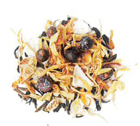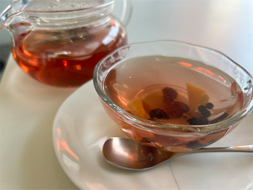 酸味のあるローズヒップやハイビスカスのお茶をドライフルーツを食べながら